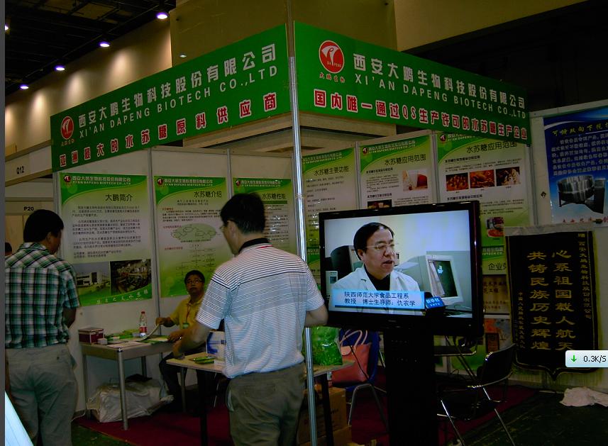 參加中韓貿(mào)洽會 走向國際大市場 參加青島食品配料展 尋求發(fā)展新商機 水蘇糖,我要認識你! 大鵬生物參加2012中國國際輕工消費品展覽會 恭賀大鵬生物榮獲中國輕工展覽科技創(chuàng)新獎 大鵬生物參加第五屆中國國際飲料工業(yè)科技展 第四屆中國營養(yǎng)產(chǎn)業(yè)高層論壇開幕 大鵬公司董事長與公眾營養(yǎng)健康中心主任于小冬在水蘇糖聯(lián)誼會上 高鵬董事長在第四屆中國營養(yǎng)產(chǎn)業(yè)高層論壇上 公眾營養(yǎng)改善OLIGO項目啟動儀式